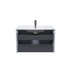 Пластиковый, серый ограничитель под сифон в верхнем ящике.