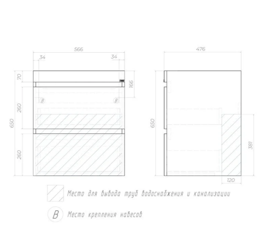 Глубина - 476 мм